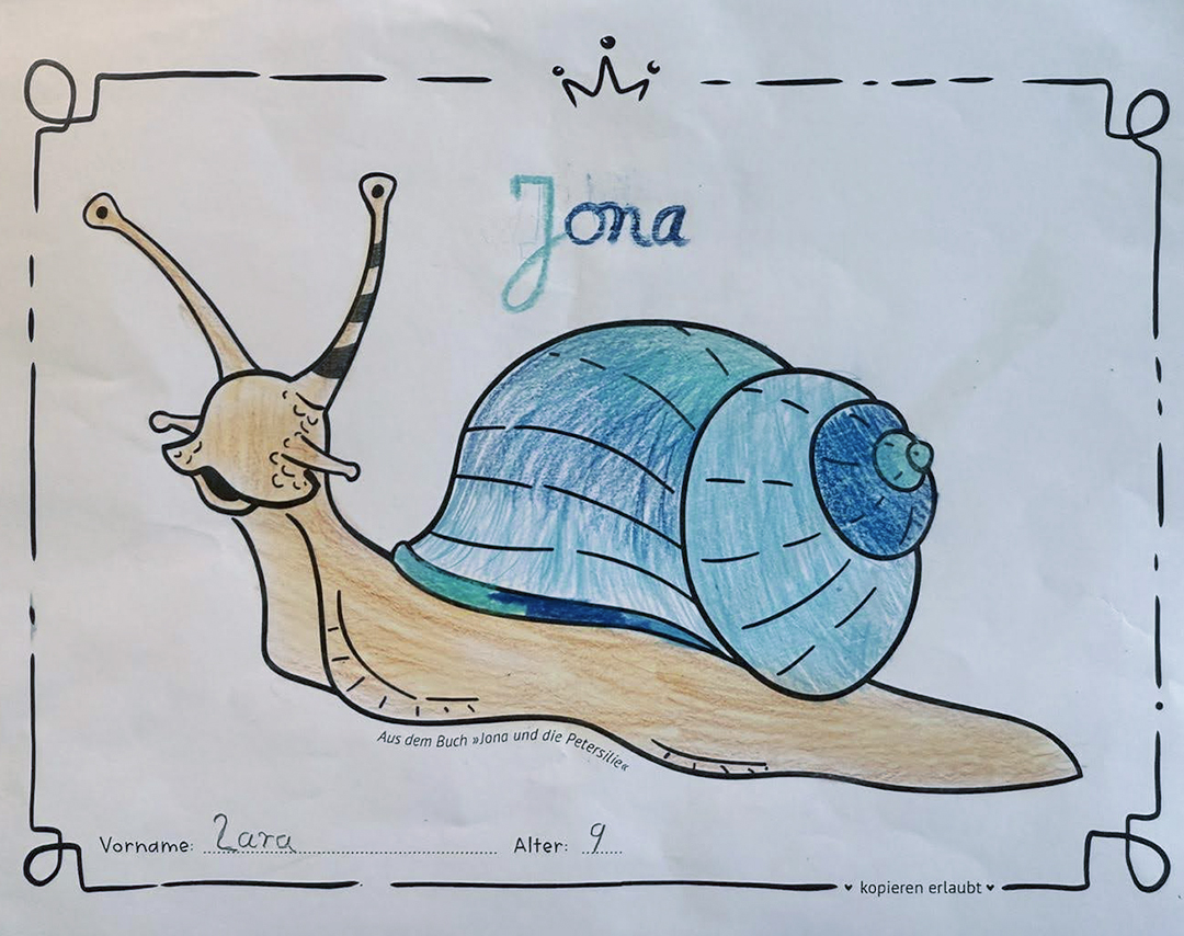 Hier findest du den Schneckenkönig Jona der von Kindern ausgemalt wurde. So individuell, wie jedes Kind,